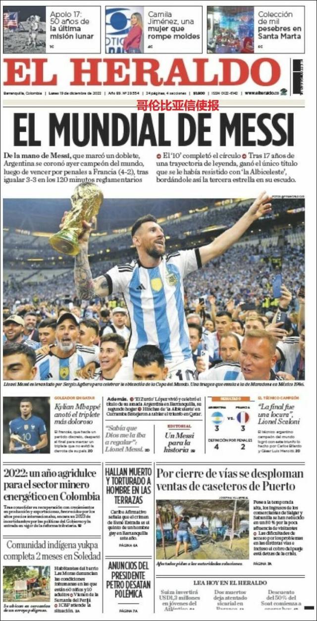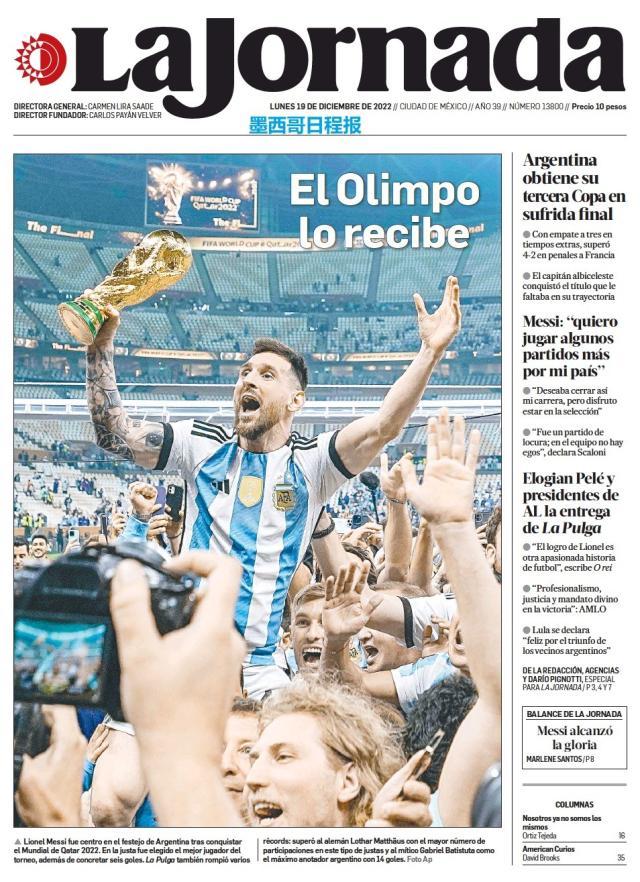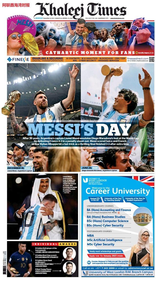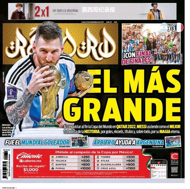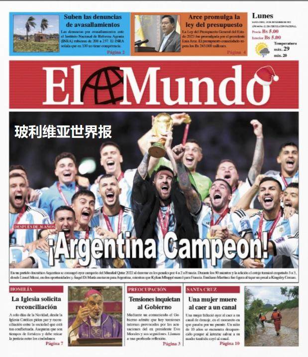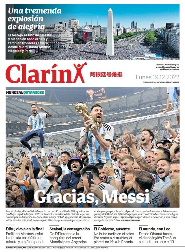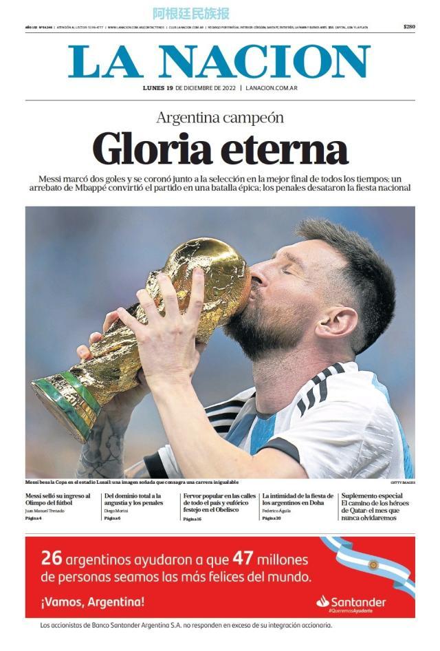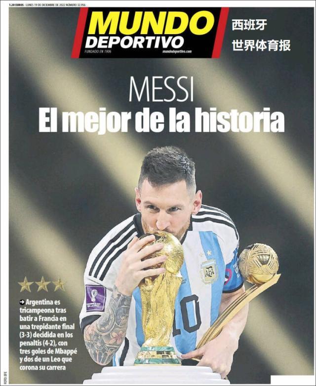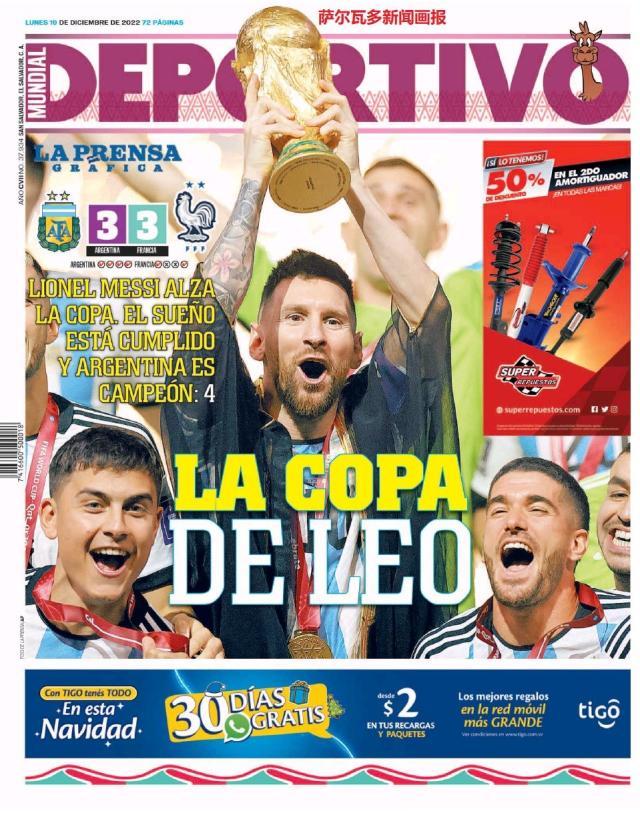 这是全世界近200家报纸在阿根廷夺得世界杯冠军后的封面。一位足球明星和他的球队接受举世礼赞,这在传媒史上实属罕见。