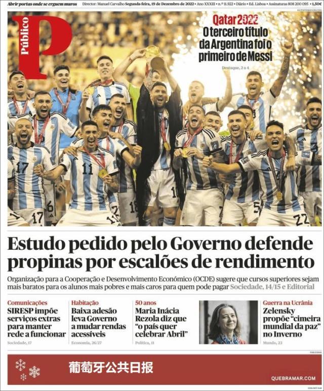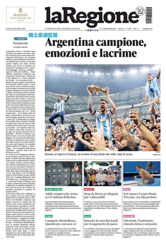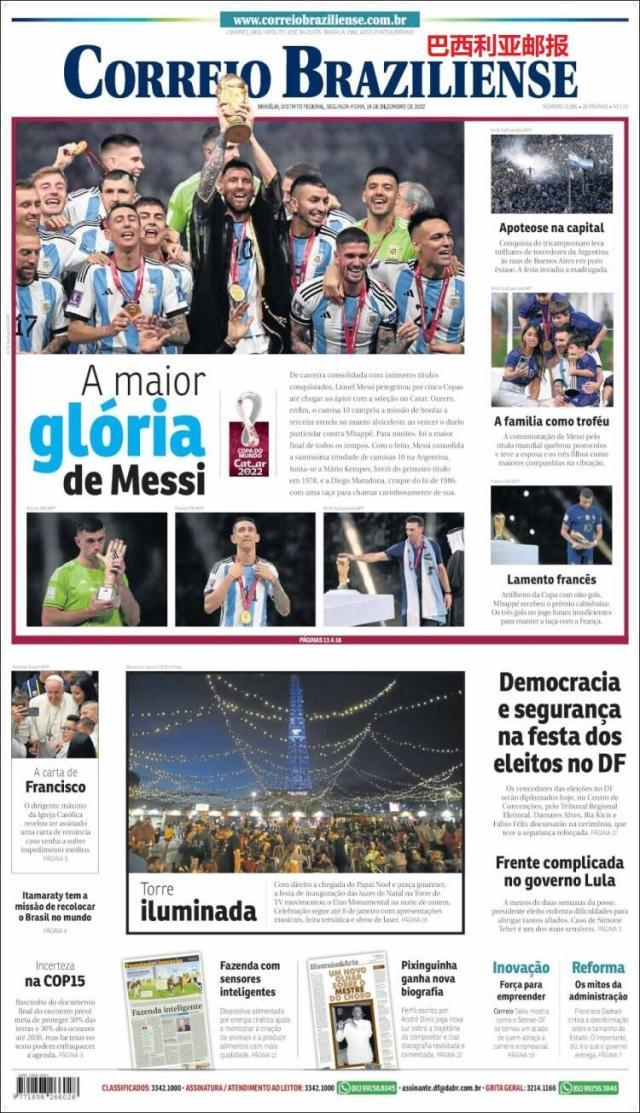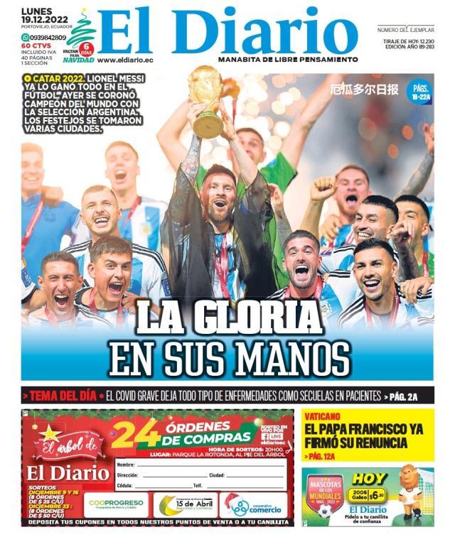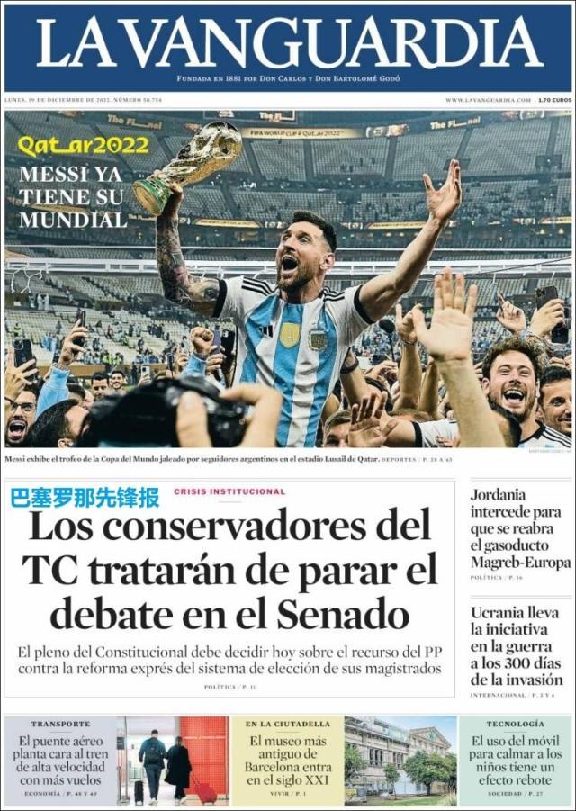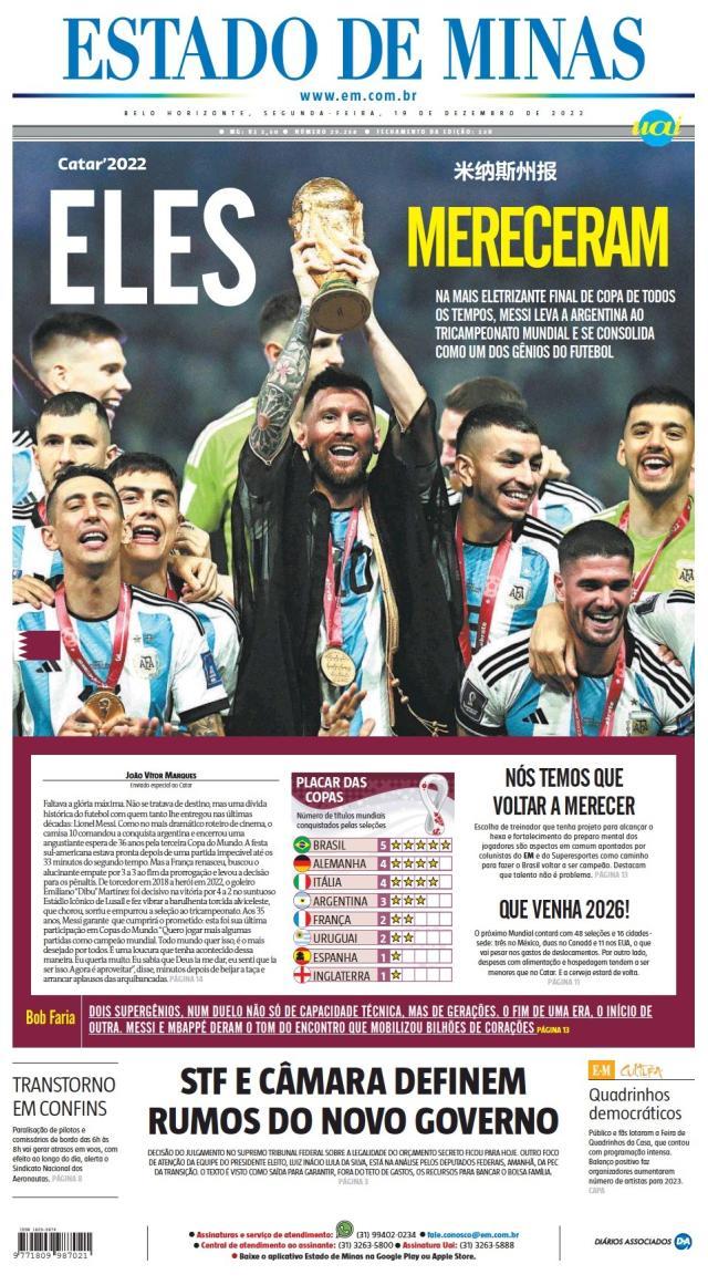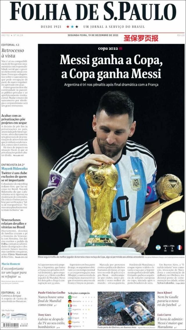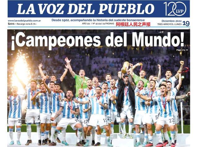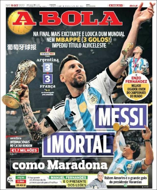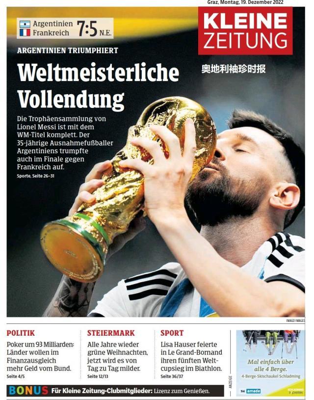 这是全世界近200家报纸在阿根廷夺得世界杯冠军后的封面。一位足球明星和他的球队接受举世礼赞,这在传媒史上实属罕见。
