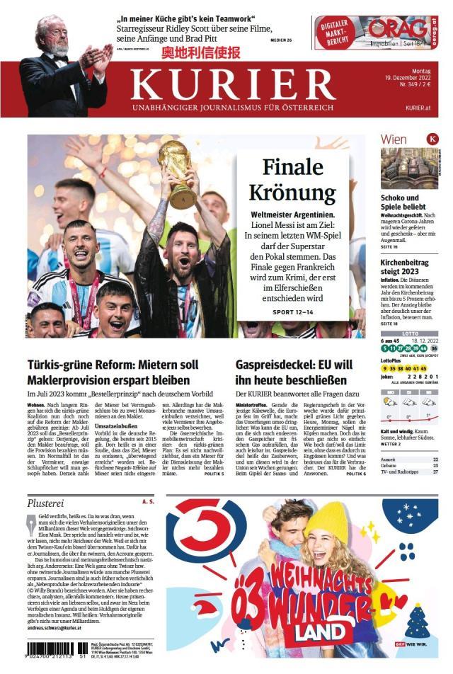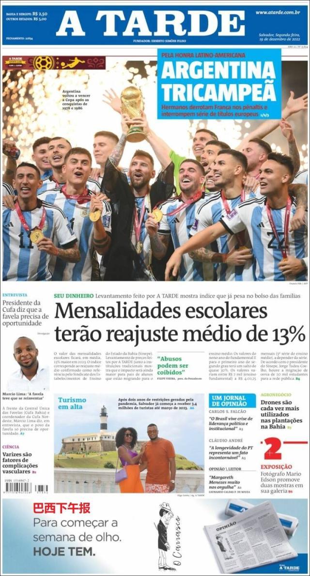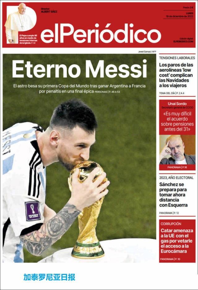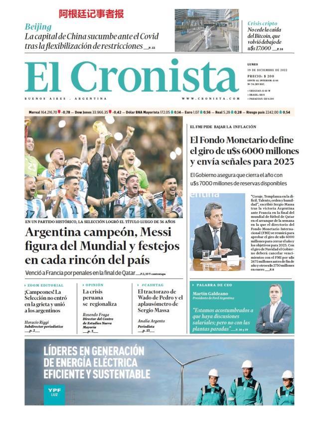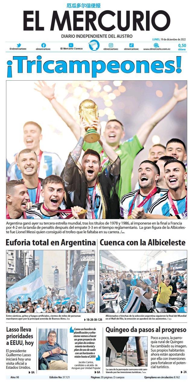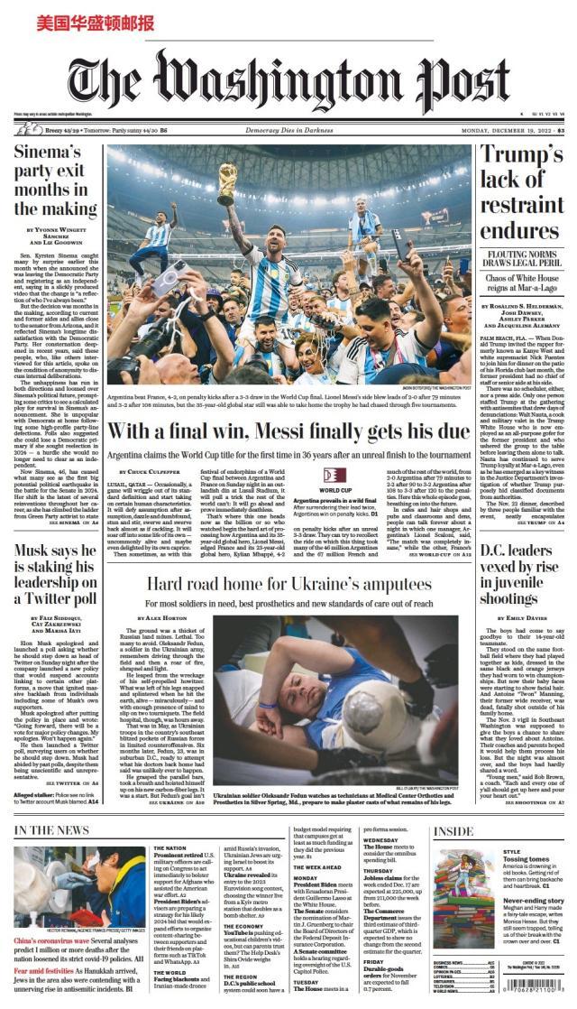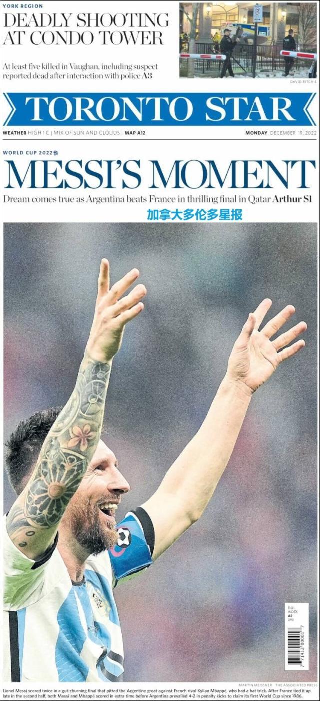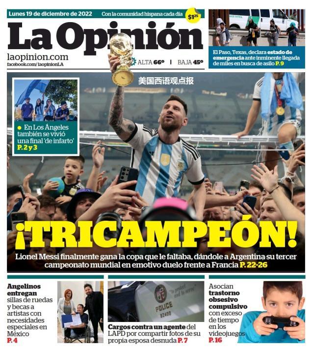 这是全世界近200家报纸在阿根廷夺得世界杯冠军后的封面。一位足球明星和他的球队接受举世礼赞,这在传媒史上实属罕见。
